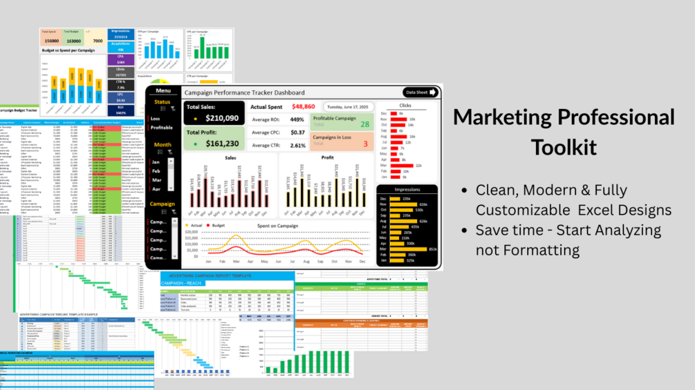 Marketing Professionals Templates are powerful, ready-to-use tools designed to help marketers plan, execute, track, and report campaigns with ease. Whether you’re managing social media ads, email campaigns, SEO, or multi-channel marketing, these templates provide clear dashboards, trackers, planners, and reports that save you time and enhance data-driven decision-making.